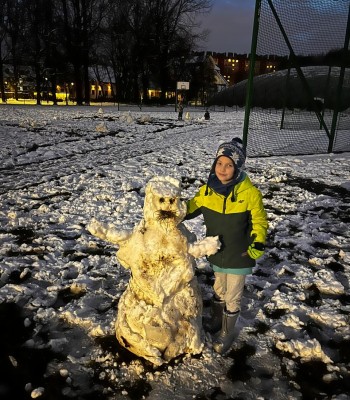 W mroźny styczniowy dzień udałyśmy się na spotkanie z Naszym Marzycielem. Już od progu powitały nas dwa psiaki Kubusia, które chłopiec uwielbia. Kuba był jeszcze w szkole, więc miałyśmy okazję porozmawiać z Tatą, który z dumą opowiadał o swoim synu. Po chwili w drzwiach pojawił się uśmiechnięty 7-latek. Zanim w ogóle nas zauważył został oblężony przez swoich czworonożnych przyjaciół i dłuższą chwilę to im właśnie poświęcał swoją uwagę.