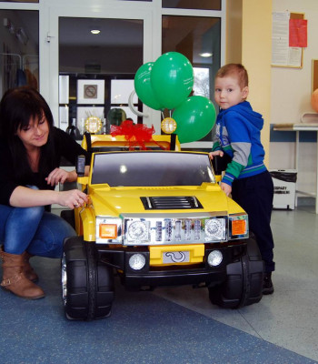 W końcu nadszedł dzień odwiedzin. Zapakowaliśmy Jeep-a do auta pani Moniki i ruszyliśmy w drogę do szpitala. Były z nami pani Kasia, pani Agatka i nasze mamy. Nie mogliśmy doczekać się momentu spełnienia marzenia. Marcelek był troszkę wystraszony, ale myślę, że również niesamowicie szczęśliwy z powodu spełnionego marzenia. To niesamowite uczucie, kiedy można uszczęśliwić kogoś, kto tej radości potrzebuje najbardziej!