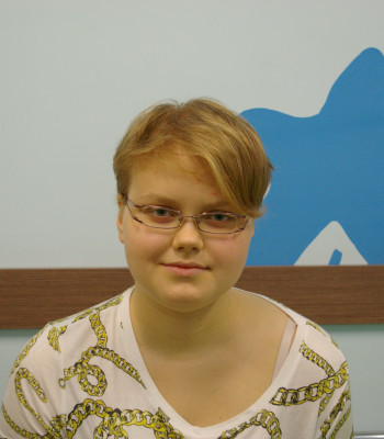 Zapukaliśmy do pokoju i po usłyszeniu „proszę” weszliśmy uśmiechnięci do pokoju. Na łóżku siedziała Paulinka- piętnastoletnia złotowłosa dziewczyna, która razem z Mamą bardzo miło nas przywitała. Od razu złapaliśmy świetny kontakt z nastolatką , miło nam się razem rozmawiało. Dowiedzieliśmy się, że naszej Marzycielce języki nie są obce, bowiem uczy się ich pilnie ( i z wielką przyjemnością), a zwłaszcza angielskiego. Prezent- lodołamacz od fundacji mamy nadzieję ucieszył Paulinę- otrzymała od nas książkę do nauki języka angielskiego i piękny długopis firmy Parker. Zainteresowania Paulinki na tym się nie kończą. Uwielbia także podróże i wyznaje zasadę „ruch rzeźbi umysł”, dlatego bardzo lubi pływać i jeździć na rowerze. Łąki, pagórki, lasy, wiatr we włosach- to jest to!