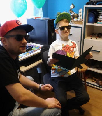 Dzisiejszego dnia mieliśmy ogromny zaszczyt spełnienia marzenia małego Filipa, ale o tym zaraz. Ta przygoda zaczęła się już z samego rana, bo tuż przed 7, kiedy to we dwójkę wyruszyliśmy niecałe 200 km od Bydgoszczy - do Kalisza, czekała na nas niespodzianka dla młodego fana Youtube'a i gier. Tą niespodzianką była osoba w postaci znanego wśród internautów rapera MC Sobieskiego. Kiedy już zabraliśmy następnego pasażera wraz z bratem, droga obrała kurs na Koronowo, niewielką mieścinę za Bydgoszczą umiejscowioną nad zalewem. Po kilkugodzinnej, wesołej drodze w końcu dotarliśmy do celu. Kiedy wysiedliśmy z samochodu, wzięliśmy duży pakunek i włączyliśmy kamerę. Na wejściu czekali na nas rodzice marzyciela, a kawałek dalej nasz mały bohater. Kiedy jego idol podszedł, by się z nim przywitać, Filip oniemiał. Zupełnie nie wiedział jak zareagować, nie wiedział co się dzieje. Jednak trwało to krótką chwilę. Kiedy już zrozumiał, że stoi przed Nim jego największy IDOL doszedł do wniosku, że chciałby wykorzystać tę niepowtarzalną okazję jak najlepiej, dlatego zabrał MC Sobieskiego do swojego pokoju, gdzie ustawili komputer, czyli marzenie Filipa. Przy okazji nasz marzyciel zadał niezliczoną liczbę pytań swojemu idolowi oraz wspólnie rapował około dwóch godzin. Po wyczerpujących dyskusjach zostaliśmy poczęstowani przepysznym obiadem. Po mile spędzonym czasie uradowani udaliśmy się w podróż powrotną do Kalisza. Wracając, w myślach nadal mieliśmy obraz szczęśliwego Filipa i to właśnie dzięki temu wszyscy czuliśmy niesamowite wzruszenie oraz przyjemne ciepło na sercu. Uśmiech dziecka potrafi czynić cuda, sprawić, że pomimo zmęczenia nie mogliśmy opanować uśmiechu na naszych twarzach. Ten dzień z pewnością na długo zagości w myślach Filipa, jego rodziny, MC Sobieskiego oraz naszych.