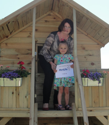 Na miejscu czekała już na nas przedstawicielka firmy „MetLife”, dzięki której udało się spełnić marzenie Stefci. Pierwszą rzeczą, którą po przyjeździe musiałyśmy zrobić było oczywiście obejrzenie placu zabaw. Dziewczynki piękne udekorowały go skrzynkami z kwiatkami, które same wybierały. Od razu po przyjściu na plac zabaw dziewczynki zaczęły się huśtać i widać było, że sprawia im to ogromną radość. Plac zabaw miał wszystko, co taka porządna inwestycja posiadać powinna. Zgodnie z życzeniem małej Księżniczki posiada on dwie huśtawki, tak aby Stefcia mogła bujać się na nich ze swoją siostrzyczką, zjeżdżalnię i domek w którym można się schować podczas deszczu. To wszystko można podziwiać na naszych zdjęciach dołączonych do relacji. Po obowiązkowej sesji zdjęciowej przeszliśmy do domu.