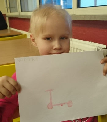 Od razu przeszłyśmy do wspólnej zabawy. Na parapecie zauważyłyśmy pracę plastyczną, która bardzo nas zaciekawiła. Wykonana był nietypowymi farbami, a znajdowała się na przezroczystym pleksi. Nieznana rzecz zaintrygowała nas tak bardzo, że Natalka zaproponowała nam stworzenie własnych dzieł. Szybko zabrałyśmy się do wybierania wzorów, które najbardziej nam się podobają. Jednak nim zdążyłyśmy to zrobić Natalka zasygnalizowała nam, że pora przejść do najważniejszego tematu tego dnia, którym jest oczywiście jej marzenie. (Prawdopodobnie nie mogła się doczekać, aby zdradzić nam ten sekret.) Kiedy więc zadałyśmy małej to szczególne pytanie zapadła chwila ciszy… ale tylko po to byśmy zaraz mogły usłyszeć o… elektrycznej hulajnodze. Tak, to właśnie takie cudo pragnie mieć Natalka. Jak się po chwili dowiedziałyśmy mała marzy o niej od dawna i jest przekonana, że będzie ona dla niej najlepszym prezentem. Do tego nie straszne są jej możliwe upadki bądź szybka prędkość. To tylko atuty takiej zabawki! Natalka to bardzo odważna dziewczynka, która chętnie sprosta nowym wyzwaniom. Poza tym sześciolatka bardzo chciałaby, żeby jej nowa hulajnoga miała różowy kolor. Wiedząc już czego pragnie poprosiłyśmy ją aby dla pewności narysowała nam swoje marzenie. W końcu nie ma to jak mieć potwierdzenie na papierze! Przy pomocy mamy dziewczynka sprawnie uporała się z zadaniem. Teraz już byłyśmy w pełni przekonane, że Natalka wie czego chce. Dlatego też z rysunkiem w rękach wyruszyłyśmy na poszukiwanie elektrycznej hulajnogi :)