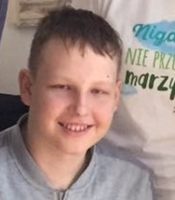Wiosna ciągle nie chce nadejść, ale meteorolodzy zapowiadają polepszenie pogody.Dla nas to ważne. Jedziemy do Huberta spełnić jego marzenie, a tym marzeniem jest rower. Miło byłoby od razu z niego korzystać. Hubert z rodzicami mieszka w gospodarstwie rolnym i tu na podwórzu czeka na nas. Gdy wysiadamy z samochodu rzucają się w oczy piękne, wesołe rabatki kwiatowe i finezyjnie przycięte iglaczki. Czeka też na nas olbrzymi karton.Rower nie zmieścił się do mojego samochodu, więc wysłaliśmy go kurierem, Hubert jest bardzo wysoki , dlatego rower ma specjalną , długą ramę, Na podwórku Hubert z pomocą taty rozprawiają się z kartonem. Muszą jeszcze skręcić pedały i naprostować kierownicę. No i zaraz pierwsza jazda, przystanek, regulacja wysokości siodełka i dalsze kółeczka. Hubert ma uśmiech od ucha do ucha. Robimy sesję zdjęciową, nasz marzyciel krąży po całym podwórku. Wreszcie wszystkim robi się chłodno i wchodzimy do domu.Tu wręczam dyplomy: hubertowi i Joli Kończak, która reprezentuje społeczność Akademickiego Gimnazjum da Vinci w Poznaniu. .To uczniowie tej szkoły już w styczniu zdecydowali się spełnić marzenie Huberta i na każdej szkolnej imprezie , zebraniu sprzedawali swojej produkcji wypieki. Na koniec parę setek dołożyła im jedna z mam. Uczniowie bardzo chcieli wziąć udział w dzisiejszym spotkaniu, ale od mamy Huberta ciągle słyszeliśmy: odporność, a raczej jej brak, jak najmniej osób w otoczeniu, minimum kontaktów. Musieliśmy się temu podporządkować.Na koniec Hubert napisał podziękowania dla uczniów na pięknej, zrobionej własnoręcznie przez mamę kartce.