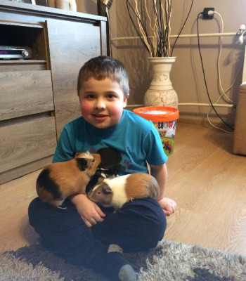 W domu na każdym kroku można było znaleźć jakiegoś zwierzaka. Oskar powiedział nam, że uwielbia zwierzęta i bardzo lubi się nimi opiekować. Ma kota, psa, dwa akwaria pełne rybek i jego ukochane dwie świnki morskie, które zdecydowanie odwzajemniają jego miłość, bo wprost nie mógł się od nich opędzić.