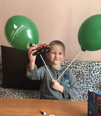 Pierwszoklasista z dużym skupieniem i niewielką tylko pomocą ułożył samochodzik z klocków Lego, który podarowałyśmy mu na przełamanie lodów, co nasunęło nam pewne podejrzenia czego dotyczyć będzie marzenie. Wiktor świetnie radził sobie z instrukcją składania klocków, w międzyczasie żywo opowiadając o Lego Ninjago, które ostatnio układał.