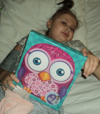 Na początku weszłyśmy do sali, w której znajdowała się Julia, bez hulajnogi, ale z upominkami od naszych "Mikołajów". Jula jednak domyślała się, że coś się tu święci, więc po oględzinach nowej kolekcji sowich gadżetów oraz słodyczy przestałyśmy ją trzymać w niepewności i wniosłyśmy ten, jakże wyczekiwany, prezent.