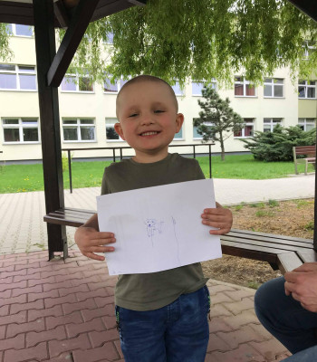 Oskar jest bardzo pogodnym i wesołym chłopcem, którego rozpiera energia. Początkowo nie mógł skupić się na rozmowie z nami, zamiast tego wolał biegać i skakać wokół altany, w której się spotkaliśmy. Dopiero po chwili udało nam się zainteresować go konwersacją z nami. Oskar uwielbia zabawy z rówieśnikami oraz oglądanie kreskówek z superbohaterami, których jest wielkim fanem. Szczególnie lubi Spidermana, którego naśladował w zabawie i próbował tak jak on „strzelać” pajęczyną z nadgarstka Chłopiec jest wrażliwy na piękno przyrody, kocha zwierzęta. Gdy jednak przeszliśmy do głównej części naszego spotkania, czyli rozmowy o marzeniach, nie mieliśmy zupełnie pojęcia co to może być. Oskar zaskoczył nas swoim pięknym życzeniem. Chciałby mieć białego psa, z którym mógłby się bawić i w przyjemny sposób spożytkować pozytywną energię, która go wypełnia. Dzięki niemu będzie miał towarzystwo w czasie, kiedy nie jest w szkole. Przyznajemy, że marzenie to bardzo nam się spodobało.